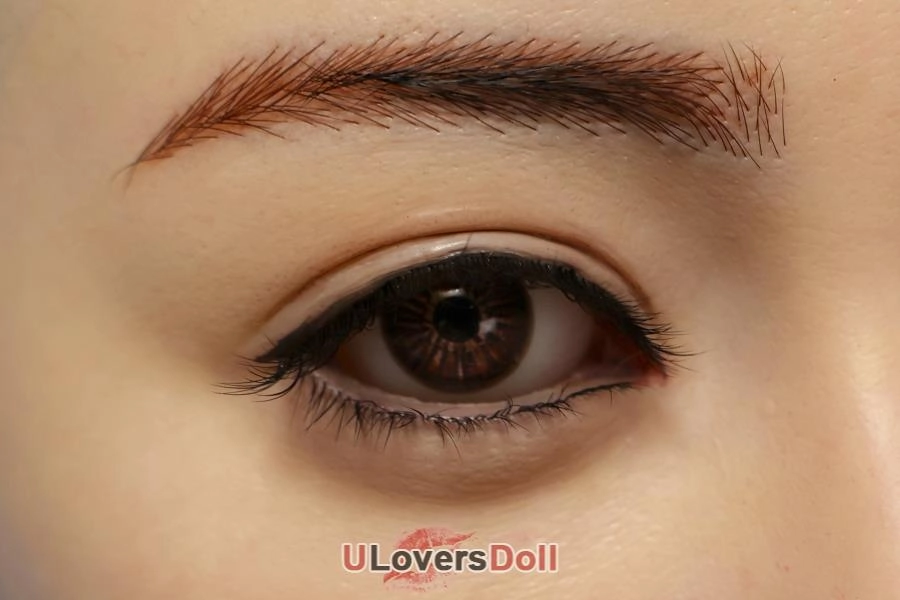 The face is sculpted using 107 skeletal modeling points, reshaping Eastern aesthetics in 3D. Its makeup exhibits biomimetic shading that shifts naturally with viewing angles, while lip, eyebrow, and nose highlights are precisely controlled. Lip textures are deeply engraved (≥0.6mm) to replicate real skin, supporting both moist glow and reflective surfaces. Eyebrows and eyelashes are meticulously hand-implanted at a 24° golden angle, with each strand aligned to mimic light absorption, preventing clumping or shedding.